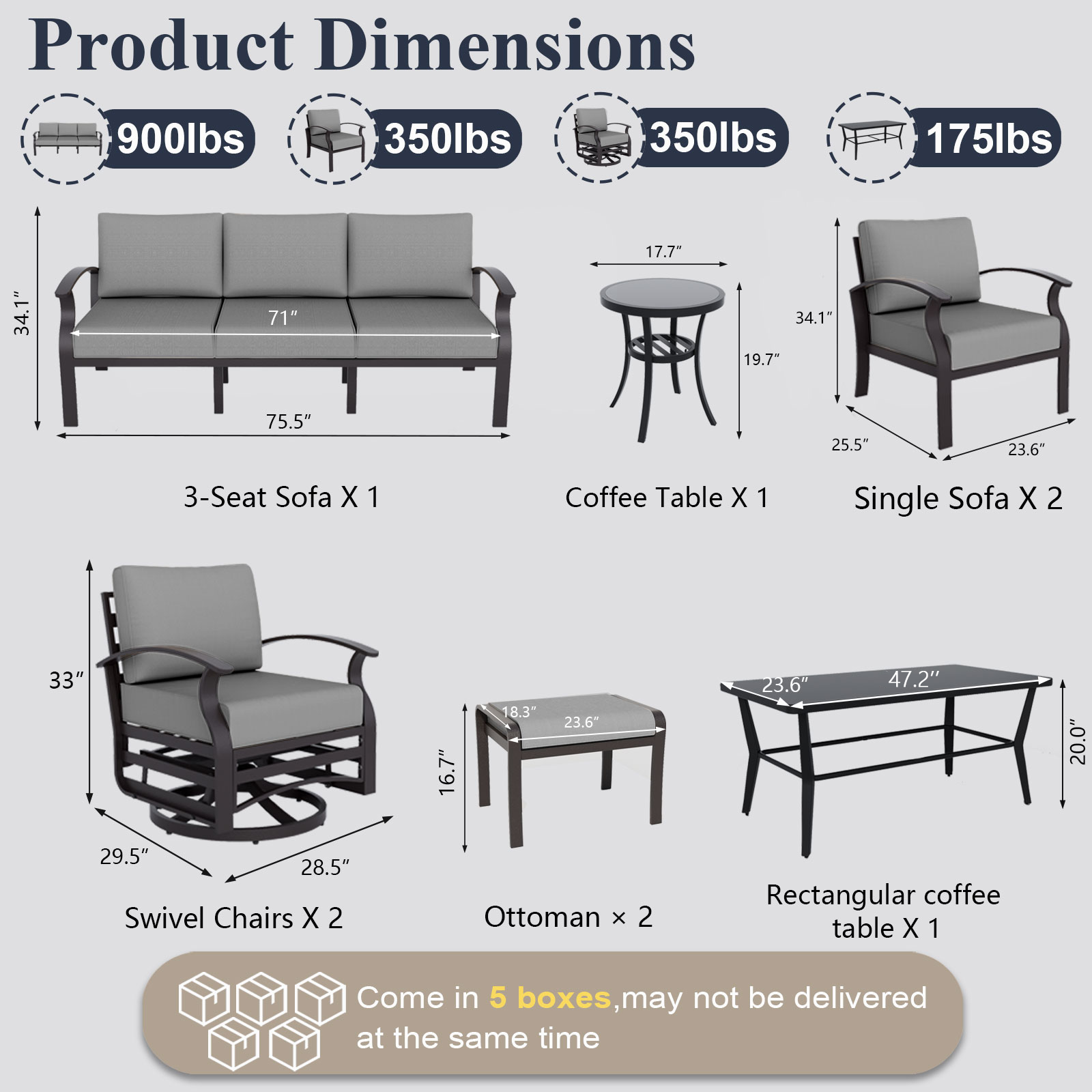 ALAULM 7 Pieces Metal Patio Furniture Set Modern Outdoor Furniture