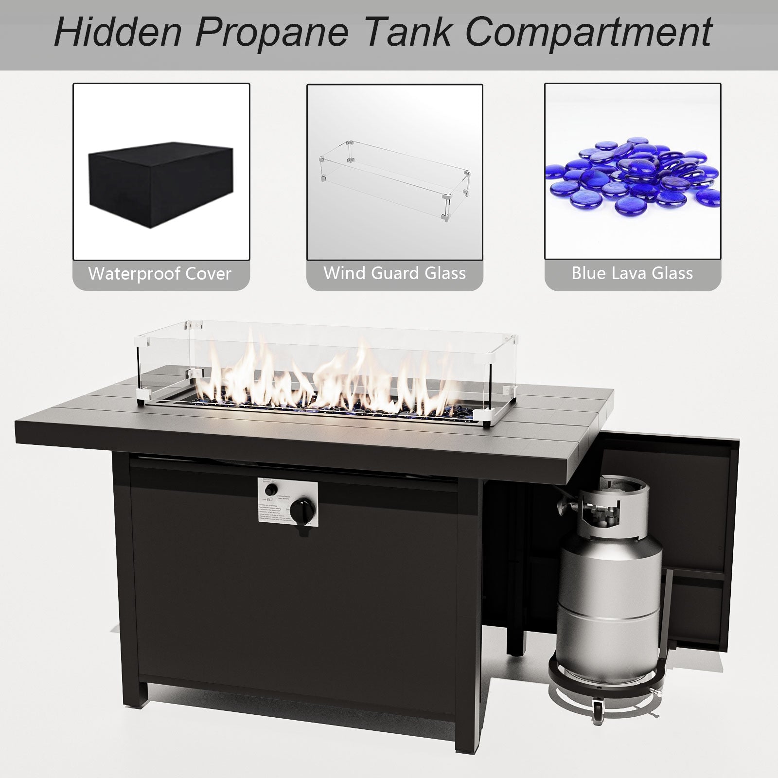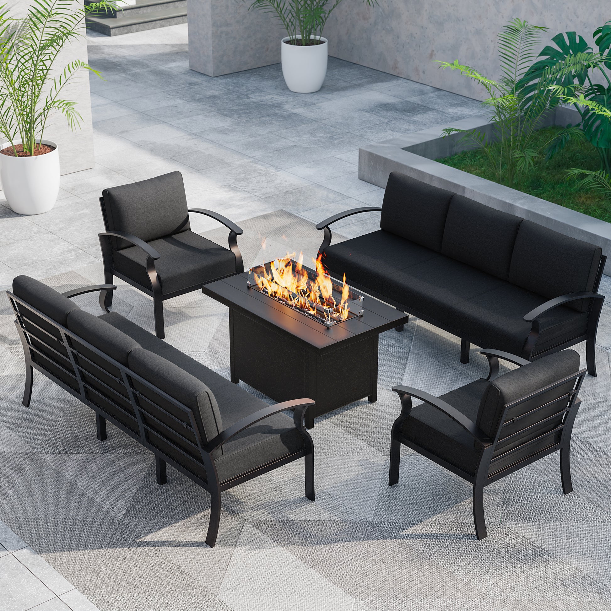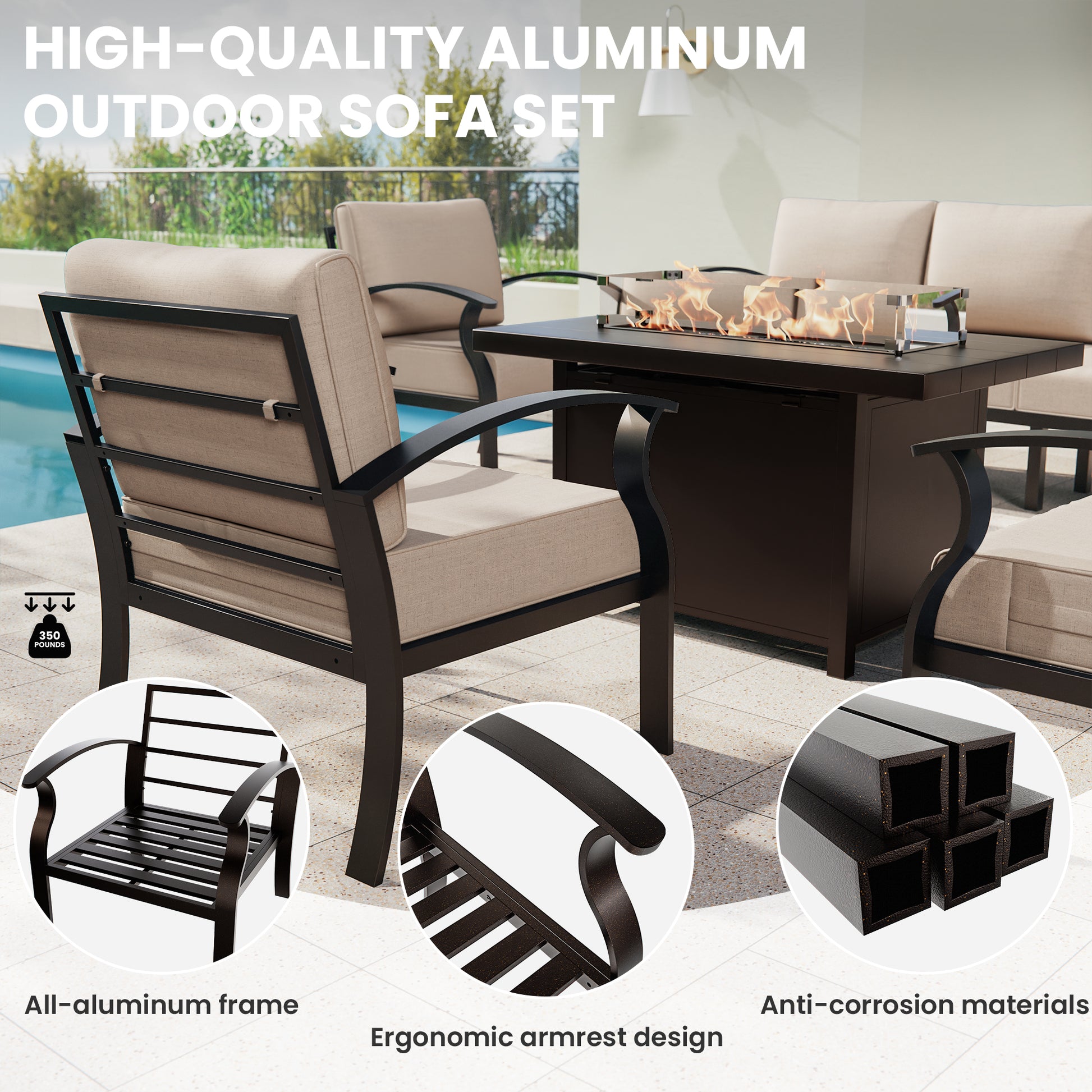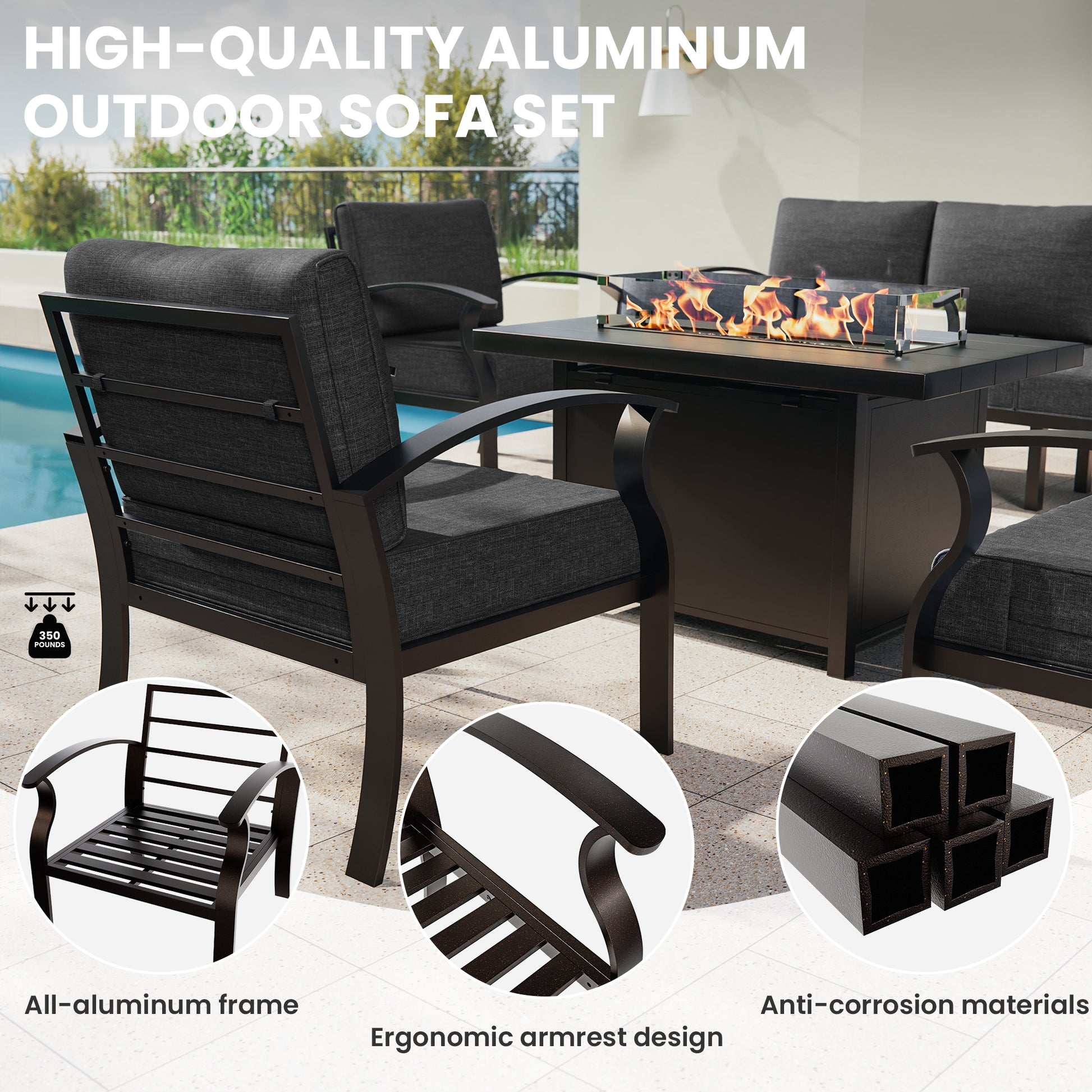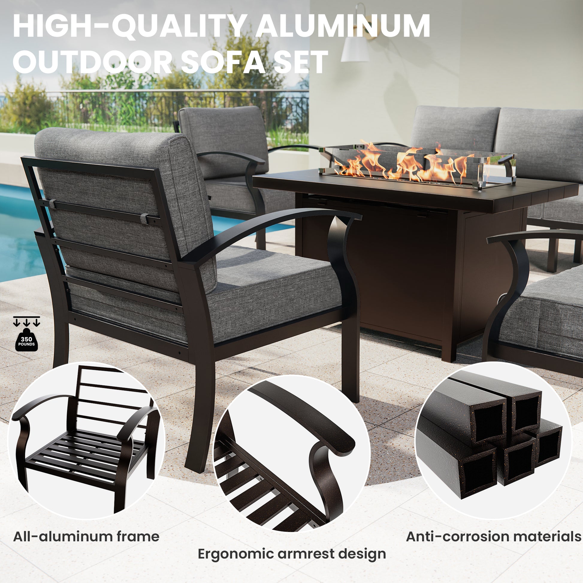 ALAULM 9-Seat Aluminum Patio Furniture Set with CSA-Certified Fire Pit Table & Swivel Chairs