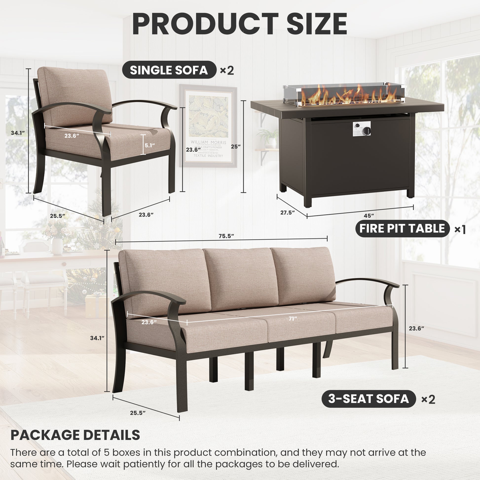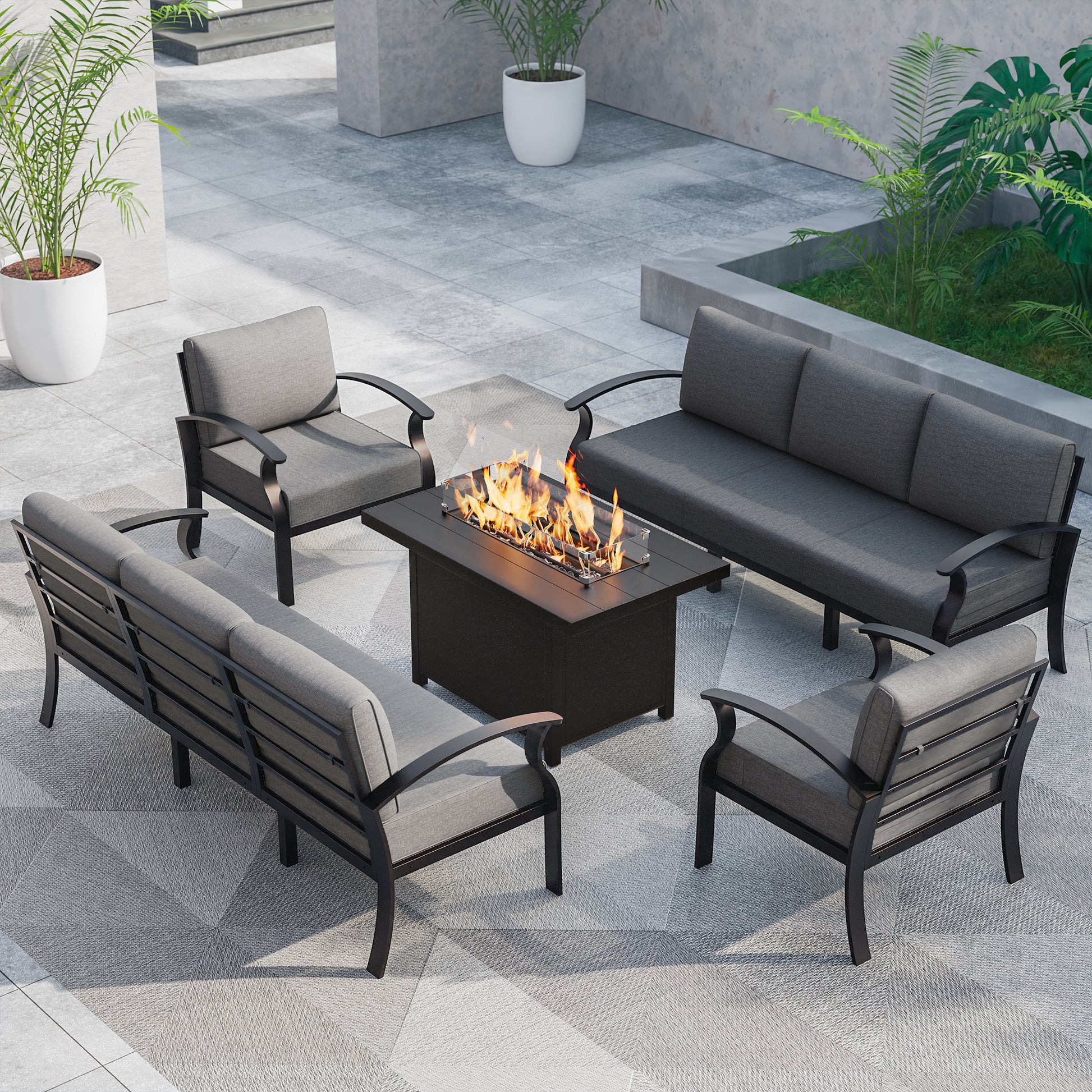 It fits my patio like a glove, the sofa is roomy enough for my whole family, and the fire feature is so pretty at night.