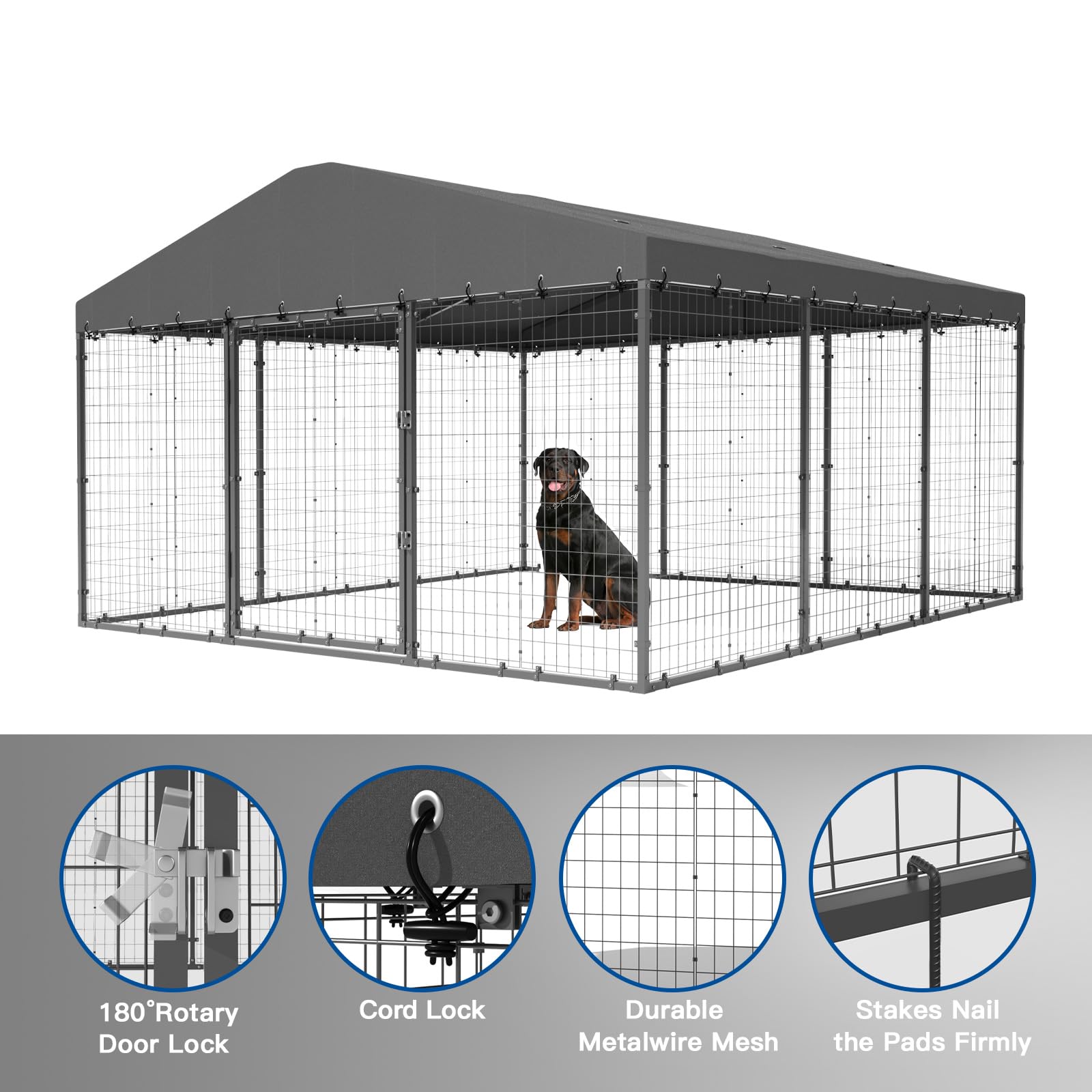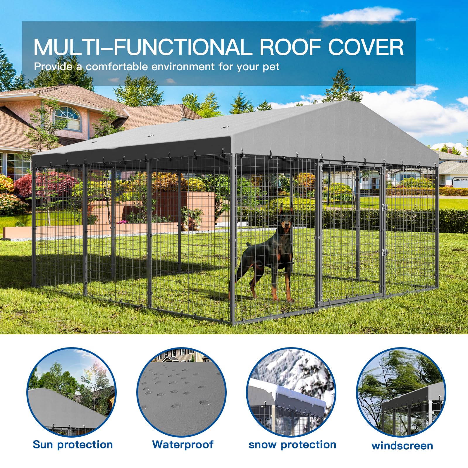 ALAULM Outdoor Dog Kennel with Waterproof Cover & Safety Locks